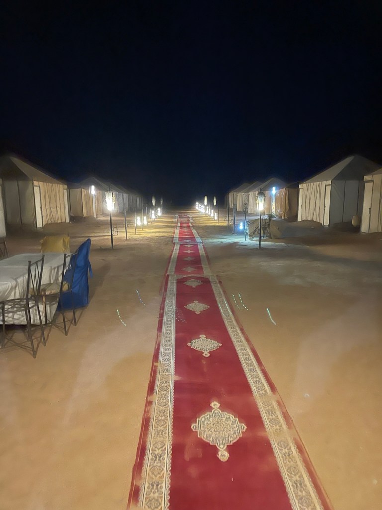 An hour and a half after riding camel into our desert camp, we were greeted with dinner—a vegetable appetizer and tagine, which was the typical Moroccan stew cooked in a clay pot and could consist of chicken, lamb or beef. The local camp employees then started a bonfire for us where we heard traditional Berber music as they played the drums and sang for us. We also had a chance to dance around the bonfire and it was such a wholesome experience. Admiring the stars under the massive Saharan sky was an unforgettable view as I saw more stars and constellations in one place than I have ever seen before.