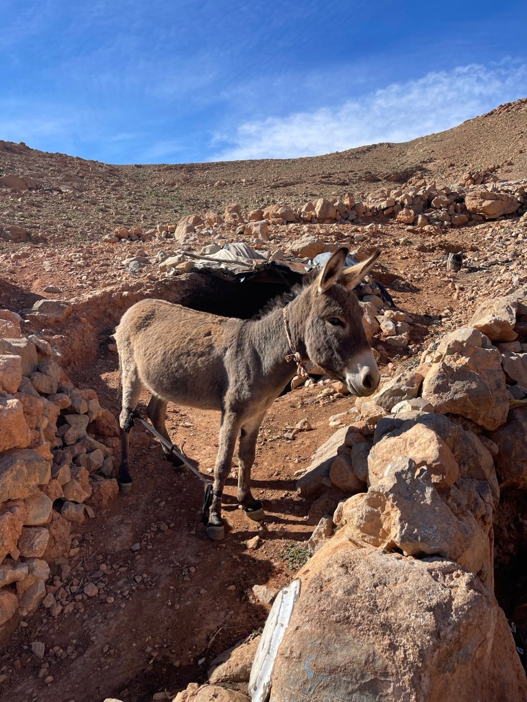 As we walked a little bit further, we were greeted by a Berber nomad that lived in a cave-like structure constructed with local stones. He was an 86-year old man who currently lived there with his wife and had followed the Berber nomadic traditions for the entirety of his life. He ushered us to sit down on colorful but tattered rugs right outside of his residence. He had the kindest smile and fine wrinkle lines caused by sun exposure, most likely, indicative of his experiences and wisdom. He greeted us with the infamous Moroccan mint tea while his wife shared her freshly baked flatbread. It was Moroccan hospitality at its finest and one of the highlights of the trip!